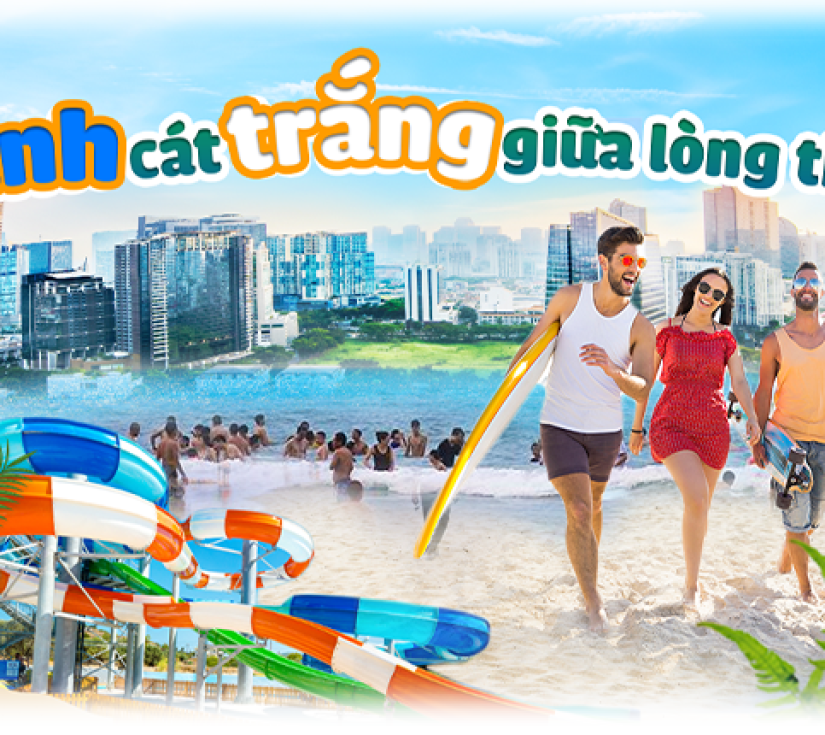 Chỉ mất khoảng 1 giờ di chuyển Quý khách sẽ được thỏa mình vui chơi vào những hoạt động trong các cụm trò chơi dưới nước theo tiêu chuẩn Canada, hoà mình vào những ngọn sóng kì diệu cao đến 4m với bãi biển nhân tạo lớn nhất Đông Nam Á.