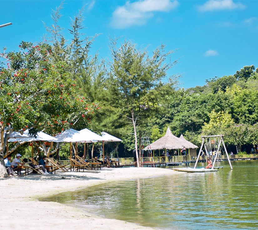 • Hồ bơi bán nhân tạo độc đáo với nước mạch trong lành, thỉnh thoảng xuất hiện đàn cá nhỏ tung tăng dưới chân.